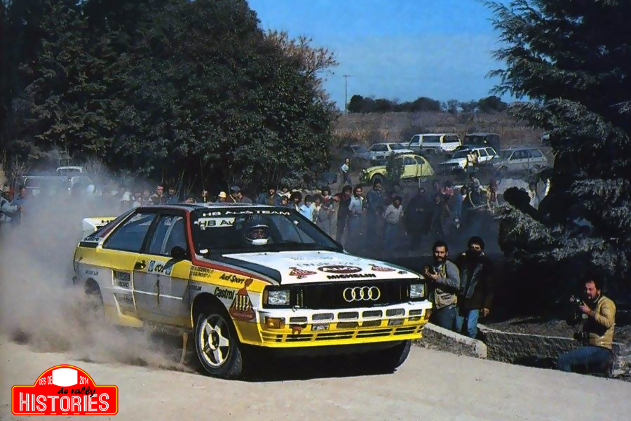 Mikkola-Hertz van tenir uns inicis dubitatius, havent-se de comformar amb el segon lloc. Lancia, conscients de les poques possibilitats de lluitar en igualtat de condicions vers els Audi Quattro a l'Argentina, decidien estalviar-se l’ampli desplegament de mitjans i recursos econòmics que comportava la ronda sud-americana i decidien no competir-hi, pel que tot i la llarga llista d'inscrits, pràcticament els únics pilots capdavanters i amb opcions a victòria eren els d'Audi. Els bavaresos d’Ingolstadt alineaven fins a 4 unitats dels seus Quattro A2, dues en mans dels seus pilots habituals en el certamen mundial, els suecs Stig Blomqvist i Björn Cederberg i els nòrdics Hannu Mikkola i Arne Hertz, i d’altra banda dues més per als pilots locals Jorge Recalde i Jorge del Buono, qui en principi havien de competir a bord d’un Renault 5 Turbo portat des de França com a premi per les seves darreres actuacions amb un Renault 18 GTX, així com els seus compatriotes Luis di Palma i Nestor Straimel, qui es posarien al volant dels respectius cotxes d'entrenaments reacondicionats. Prenent la sortida des de Buenos Aires a les 10 en punt de la nit del divendres 27 de juliol, la llarga llista d’equips participants cobrien un feixuc tram d’enllaç, d’una mica més de 700 km, fins a l’epicentre real de la competició, la provincia de Córdoba, la qual per primera vegada en la història de l’esdeveniment argentí, acollia una edició del ral·li. Una distància que els argentins Luis di Palma i Nestor Straimel no arribaven a cobrir, en quan el muleto que havia emprat Stig Blomqvist, degudament re-etiquetat amb una pila d’esponsors locals, era víctima d’una avaria de motor quan encara no havien ni recorregut mig camí i que deixava al pilot, especialista en la competició en circuits, a l'estacada. Arribats a la serra cordobesa pràcticament en el moment del trenc d’alba del dissabte 28 de juliol, 4 proves especials cronometrades s’hi programaven, per tal de fer entrada al parc tancat de Córdoba a partir de 2 quarts i 2 minuts de les 3 de la tarda, un primer escull que suposaven 173,16 km. Gran coneixedor del terreny, Jorge Recalde, que era natural de la propera ciutat de Villa Carlos Paz, juntament amb Jorge del Buono, donaven la campanada en imposar-se en la primera prova especial de l’itinerari, un resultat que deixava als argentins al capdavant de la classificació provisional per davant dels dos Audi Quattro A2 oficials. Ja en la següent prova especial, Stig Blomqvist i Björn Cederberg, líders provisionals del certamen de pilots, aturaven el cronòmetre abans que ningú i els suecs es feien amb la primera posició provisional, mentre que els seus companys d’equip, Hannu Mikkola i Arne Hertz, demostraven tenir una molt bona i necessària compenetració amb el seu Audi, en fer el mateix en la tercera cronometrada del programa, Villa Graf Belgrano - Portero de Garay, la qual amb 62,74 km de corda era la segona més llarga de tot el programa, alhora que la més ràpida amb una velocitat mitjana de 123,90 km/h. Jorge Recalde i Jorge del Buono tancaven l’etapa amb una altra victòria parcial de tram, la segona de quatre possibles, i els argentins demostraven així tenir un elevat nivell, fent accés al parc tancat de Córdoba en la tercera posició provisional a 25 segons del registre d’Stig Blomqvist i Björn Cederberg, mentre que Hannu Mikkola i Arne Hertz ho feien en segon lloc a 18 segons dels seus companys suecs. Totes tres parelles d’Audi ocupaven els 3 primers llocs a final de cadascun dels quatre trams disputats, un excels rendiment, que unit a les elevades velocitats promig d’aquestes, deixava al primer dels 3 equips de la marca de les 4 anelles amb 12 minuts i 28 segons de marge amb Ernesto Soto i Martin Christie, quarts classificats i primers entre els Grup A. Després d’una jornada sencera de descans, la competició es reprenia el dilluns 30 de juliol a les 6 en punt del matí amb 107 equips sortint del parc tancat, 69 entre aquells que tenien homologació per a competir en el mundial. Un bucle de 7 trams cronometrats figurava en el programa de l’etapa, els quals recorrien la part més septentrional de la província i llur distància total competitiva arribava fins als 319,93 km. Previ reagrupament a La Higuera, la jornada s’acabava amb el retorn a Córdoba en passar 6 minuts de les 5 de la tarda. Els líders Stig Blomqvist i Björn Cederberg s’imposaven novament en la primera prova especial de la jornada, mentre que Jorge Recalde i Jorge del Buono, tot i comptar amb 4 dècimes de bar menys de pressió en el seu turbo, aturaven el cronòmetre just per darrere seu per tal d’arrabassar la segona posició provisional a uns endormiscats Hannu Mikkola i Arne Hertz, qui tanmateix també es veien superats a final de tram per Ernesto Soto i Martin Christie. La parella sueca repetia victòries de tram en les dues especials següents, mentre que Hannu Mikkola i Arne Hertz recuperaven la segona posició al terme de la tercera prova cronometrada del dia, la qual també resultava ser la més longeva de la jornada. Un guany de posició que els nòrdics ratificaven en aturar abans que ningú el cronòmetre en la prova següent i trencar així amb la ratxa dels seus companys d’equip suecs, precisament en el tram que suposava arribar a l’equador de l’etapa. Alhora, Ernesto Soto i Martin Christie s’havien de retirar del ral·li amb el seu Renault 18 GTX enmig d’un bassal d’oli, la raó, caixa de canvis trencada. Si Stig Blomqvist i Björn Cederberg iniciaven l’etapa imposant-se en les 3 primeres proves especials, els líders feien el mateix en el seu tancament, mentre que Jorge Recalde i Jorge del Buono es deixaven gairebé 1 minut en la penúltima prova especial del dia i s’acomiadaven de la lluita tancada que estaven mantenint amb els dos oficials de la marca germànica. Així doncs, marcant el registre de referència en 6 de les 7 proves 