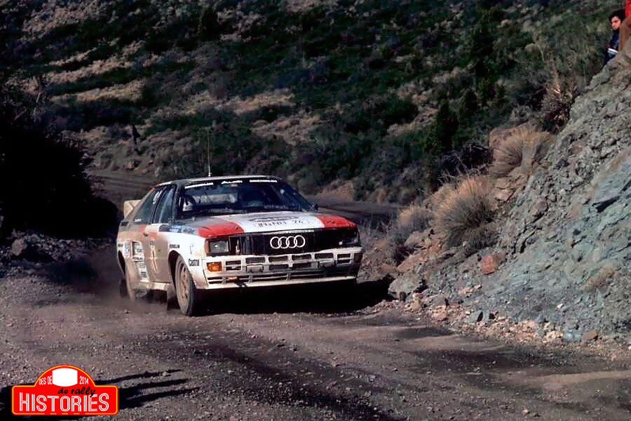 Tot i competir amb notes prestades, Bloqmvist-Cederberg finalitzaven en segon lloc. A les 10 en punt de la nit del dimarts 2 d’agost es donava el cop de bandera que suposava el tret de sortida de l’edició, un acte protocolari que es produïa davant la seu de l'estament organitzador i amb mala maror entre els responsables de l’equip Lancia, doncs l’assignació dels dorsals, i per tant l’ordre de sortida a les especials a la primera etapa, es feia mitjançant un sorteig. Adartico Vudafieri i Maurizio Perissinot rebien el dorsal número 4 i per tant haurien de prendre la sortida darrere de 3 dels Audi Quattro A2 oficials presents, mentre que Markku Alén i Ilkka Kivimäki eren agraciats amb el dorsal número 7 i per tant haurien de competir rere la quarta unitat de la marca de les 4 anelles. Segons els responsables de la firma italiana, aquesta posició de sortida tan endarrerida, seria un handicap afegit per als seus pilots, doncs aquests haurien de lluitar també amb els solcs que deixarien els cotxes bavaresos a la traçada. Feta la protocolària sortida des de la capital, els participants afrontaven un llarguíssim tram d’enllaç, d’un miler de quilòmetres, fins a la Patagònia, regió que acollia l’edició del ral·li i on el programa els afrontava amb les 2 primeres proves especials que conformaven la primera etapa, un escull de 165,24 km cronometrats que finalitzaria a Neuquén en passar 5 minuts de 2 quarts de 3 de la tarda. La primera de les cronometrades, de 81,50 km competitius, amb prou feines presentava revolts en el seu traçat, el que a la pràctica es traduïa en un exercici d'esprémer al màxim les mecàniques amb el pedal de l’accelerador a fons. Tot i no haver entrenat, els suecs Stig Blomqvist i Björn Cederberg hi aconseguien el millor temps amb un registre de 25 minuts i 48 segons, crono que equivalia a una velocitat mitjana de 189,53 km/h, la més elevada mai aconseguida en el mundial de ral·lis. A 25 segons d’aquest registre aturaven el cronòmetre els seus companys Hannu Mikkola i Arne Hertz, autors de les seves notes, mentre que Shekhar Mehta i Yvonne Mehta eren 30 segons més lents que els seus companys suecs. Luis di Palma i Néstor Straimel, a bord de l’Audi de proves reacondicionat i redecorat, i Michèle Mouton i Fabrizia Pons, afligides per problemes elèctrics amb la quarta unitat oficial, tancaven un fantàstic quintet per als d’Ingolstadt a 54 i 66 segons dels líders respectivament. Markku Alén i Ilkka Kivimäki s’hi deixaven ja en aquest primer tram 1 minut i 40 segons, mentre que Adartico Vudafieri i Maurizio Perissinot s’hi endarrerien en 2 minuts i 26 segons. La segona prova especial cronometrada de la jornada i del ral·li no presentava gaires diferències vers l’anterior, i amb un promig de 184,72 km/h, Hannu Mikkola i Arne Hertz aconseguien el millor temps per 1 segon d’avenç vers els seus companys Stig Blomqvist i Björn Cederberg. Tot i no tenir el seu Quattro A2 treballant a ple rendiment, Michèle Mouton i Fabrizia Pons tancaven la primera etapa amb el tercer millor temps a 53 segons dels nòrdics. Mentre que la creu per als de Lancia es feia més grossa en quan Markku Alén i Ilkka Kivimäki es topaven també amb problemes d’embragatge. Completada la breu primera etapa, es procedia amb l’entrada al parc tancat de Neuquén el dimecres a primera hora de la tarda, Stig Blomqvist i Björn Cederberg lideraven la classificació provisional per 24 segons de marge vers Hannu Mikkola i Arne Hertz, mentre que Shekhar Mehta i Yvonne Mehta eren tercers a 1 minut i 34 segons dels líders. Michèle Mouton i Fabrizia Pons eren quartes classificades a 1 minut i 58 segons dels seus companys, mentre que Luis di Palma i Néstor Straimel tancaven la pinça dels 5 primers classificats amb el cinquè Quattro A2 present al parc tancat a 2 minuts i 48 segons dels líders. Adartico Vudafieri i Maurizio Perissinot eren sisens a 3 minuts i 52 segons dels líders, mentre que Markku Alén i Ilkka Kivimäki eren setens a 4 minuts i 33 segons de la parella sueca. Després d’un merescut descans d’una tarda sencera, les 78 formacions presents al parc tancat de Neuquén reprenien la competició l’endemà dijous 4 d’agost a partir de les 7 en punt del matí amb 4 proves especials cronometrades per endavant de 317,06 km de corda, una activitat que finalitzaria a San Carlos de Bariloche, al ben mig dels Andes, després de que passessin 5 minuts de 2 quarts de 5 de la tarda. La jornada arrancava amb una intensa pluja i en patir una punxada en la primera especial del dia, Hannu Mikkola i Arne Hertz concedien 1 minut i 49 segons a Stig Blomqvist i Björn Cederberg, els més ràpids en aquesta especial, mentre que Michèle Mouton i Fabrizia Pons, amb el segon millor temps en el seu haver, a 1 minut i 20 segons dels seus companys suecs, aconseguien superar la quarta unitat oficial del matrimoni Mehta i fer-se així amb la darrera posició provisional de podi. Uns altres en superar els seus companys d’equip eren Markku Alén i Ilkka Kivimäki, qui en aconseguir el quart millor temps en la cronometrada inaugural de l’etapa, es feien amb la sisena posició provisional a minut i escaig de l’Audi dels locals Luis di Palma i Néstor Straimel. Encara amb la presència de pluja, els dos caps de sèrie aturaven els cronòmetres amb només 10 segons de diferència favorables als líders suecs, mentre que en el tercer, abandonant la planura de La Pampa per començar-se a immiscir en la serra dels Andes, la pluja es bescanviava per la neu i Hannu Mikkola i Arne Hertz revertien tendències en aconseguir el millor temps 6 segons per davant dels seus companys d’equip. Alhora, en aquesta cinquena prova especial del programa i tercera de la jornada, el ral·li perdia a Luis di Palma i Néstor Straimel. El pilot, habitual en el campionat de turismes argentí, pagava cara la seva manca d’experiència en l’especialitat, així com de compenetra