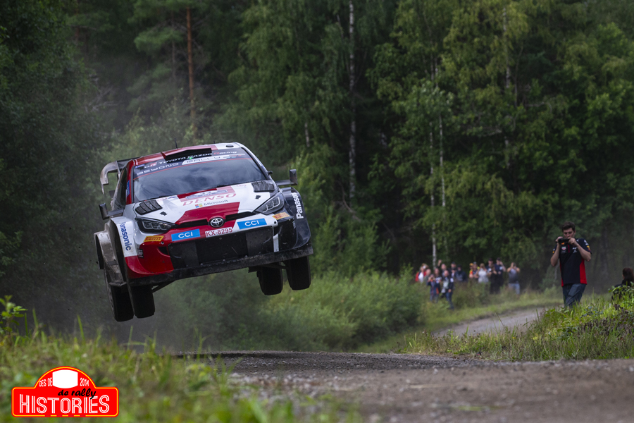 Neuville-Wydaeghe mai van acabar de trobar-se del tot a gust a pista i només pogueren ser segons. Establerta com la cronometrada inaugural de manera ininterrompuda des de 2015, els 3,48 km de l’especial semiurbana de Harju obrien un any més les hostilitats en vers les agulles dels cronòmetres, en la que els estonians Ott Tänak i Martin Järveoja hi establien el millor temps 6 dècimes de segon per davant dels seus ex companys d’equip Thierry Neuville i Martijn Wydaeghe i 7 dècimes de segon dels herois locals Kalle Rovanperä i Jonne Halttunen. Neutralitzats a partir de quan manquessin 5 minuts per a les 8 del vespre, la competició es reprenia l’endemà divendres 4 d’agost en quan les manetes dels rellotges indicaven que era 1 quart de 8 del matí, hora d’eixida del parc tancat de Jyväskylä dels líders de la provisional del certamen, els pilots de Toyota Kalle Rovanperä i Jonne Halttunen. Un bucle de 4 trams forestals i 50,64 km competitius es disputava en dues ocasions, si bé el que es celebrava en superar el punt més àlgid del cicle solar, es tancava amb un nou pas per l’especial espectacle de Harju, generant així un total de 9 proves especials que suposaven 104,76 km de lluita contra el cronòmetre, una activitat que els més matiners començarien a donar per conclosa a manca de 5 minuts per a 2 quarts de 10 del vespre, havent d’estar tots aquells que prosseguissin amb la competició en règim de parc tancat 1 minut abans de la mitjanit. Takamoto Katsuta i Aaron Johnston s’imposaven en la cronometrada inaugural de l’etapa per davant dels seus companys d’equip britànics i finlandesos, si bé aquests últims eren els qui accedien al lideratge de la classificació provisional 4 dècimes de segon per davant del Ford Puma Rally1 Híbrid d’Ott Tänak i Martin Järveoja, així com dels seus companys Elfyn Evans i Scott Martin. Aprofitant que la pista era humida i no hi havia un marcat efecte d’escombratge de pista, els nous líders refermaven la seva anhelada posició en establir el millor temps en la següent prova especial cronometrada, Lankamaa, mentre que els problemes es tornaven a interposar en el camí dels estonians d’M-Sport. En la compressió d’un dels diversos salts del tram, el càrter de l’oli del cotxe de la parella es trencava, el qual en quedar-se sense el tan necessari lubricant, veia com el seu motor deia prou al cap d’uns metres, deixant als vencedors de la darrera edició de la prova fora de combat. Elfyn Evans i Scott Martin assolien la segona posició en solitari mentre que Thierry Neuville i Martijn Wydaeghe retornaven a les posicions de podi. De fet les posicions de podi no patirien més canvis al llarg del bucle matinal, doncs Kalle Rovanperä i Jonne Halttunen aturaven el cronòmetre abans que ningú i per davant dels seus companys Elfyn Evans i Scott Martin en les 3 últimes especials de l’escull, i en quan Esapekka Lappi i Janne Ferm tenien a 3 dècimes de segon el darrer graó de les posicions d’honor, aquests patien un accident en la quarta cronometrada del bucle i es veien obligats també a renunciar a la competició, si bé amb l’opció de continuar l’endemà. Així doncs, Kalle Rovanperä i Jonne Halttunen accedien a les assistències de mitja etapa amb només 3,9 segons de marge en vers Elfyn Evans i Scott Martin, eixamplant-se aquest fins als 12,3 segons en relació a Thierry Neuville i Martijn Wydaeghe. Takamoto Katsuta i Aaron Johnston i Teemu Suninen i Mikko Markkula tancaven la pinça dels 5 primers classificats a continuació i per força marge en vers a uns retornats a la competició mundial, Jari-Matti Latvala i Juho Hänninen. Malgrat que les roderes que havien deixat amb el seu pas els participants al llarg del matí, s’havien negat d’aigua i això obligava a prendre unes precaucions especials als líders i tanmateix encarregats d’obrir pista, el cert era que els finlandesos tornaven a batre a tothom en la lluita en vers el cronòmetre, una tendència que seguiria trobant continuïtat en la segona prova especial del bucle, sisena de la jornada i setena en el còmput global de l’esdeveniment. Emperò córrer al llarg del fil d’una navalla comporta uns riscos i aquests finalment es cobraven els seus tributs en la penúltima especial forestal del dia, Kalle Rovanperä i Jonne Halttunen patien una rebolcada i la parella es veia obligada a abandonar fins a l’endemà, entregant el testimoni del lideratge a Elfyn Evans i Scott Martin. Thierry Neuville i Martijn Wydaeghe, que establien el millor temps en aquesta especial, recuperaven posició en vers a Takamoto Katsuta i Aaron Johnston i els belgues feien seva la segona posició provisional. Amb els campions del món fora de concurs, els belgues de Hyundai anaven a per totes i aquests s’imposaven també en les dues últimes proves especials de l’etapa, un rendiment que els permetia accedir al parc tancat de Jyväskylä a 6,9 segons del temps d’Elfyn Evans i Scott Martin i amb 9,5 segons de marge en vers Takamoto Katsuta i Aaron Johnston. Sense pressió i caut, Teemu Suninen i Mikko Markkula ocupaven la quarta posició en la seva segona sortida al volant del Hyundai i20 Rally1 a 28,8 segons del temps dels britànics i per un marge de 54,9 segons en relació als veterans Jari-Matti Latvala i Juho Hänninen. Si la primera etapa visitava els boscos del nord-est de Jyväskylä, la sabatina es dirigia cap als del sud-oest de l’epicentre de l’esdeveniment; amb sortida del parc tancat a manca de 3 minuts per a 2 quarts de 7 del matí per part de la primera parella participant, els re enganxats Pierre-Louis Loubet i Nicolas Gilsoul, l’etapa contenia 1 bucle de 4 trams pels quals els 59 equips participants que restaven en acció hi competirien en 2 ocasions, matí i tarda, generant així l’etapa més longeva de tot el programa amb 160,68 km de lluita contra les manetes del cronòmetre. Una activitat que la parella francòfona d’M-Sport