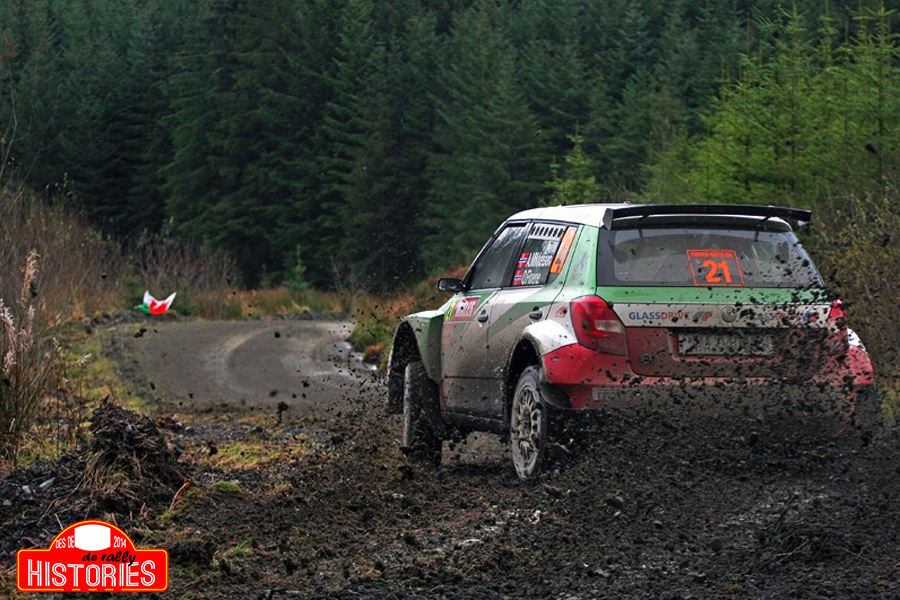 Mikkelsen-Fløene debutaven amb els colors d'Škoda volant per les especials galeses.